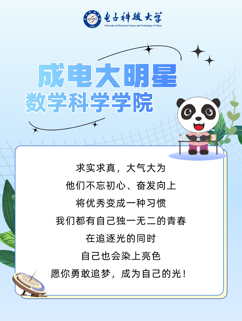 勇敢去做,勇敢去闯,趁着热血青春、大好年华,谱写好自己的大学篇章吧,相信成电一定会给你青春最好的舞台,秀出自己的精彩!